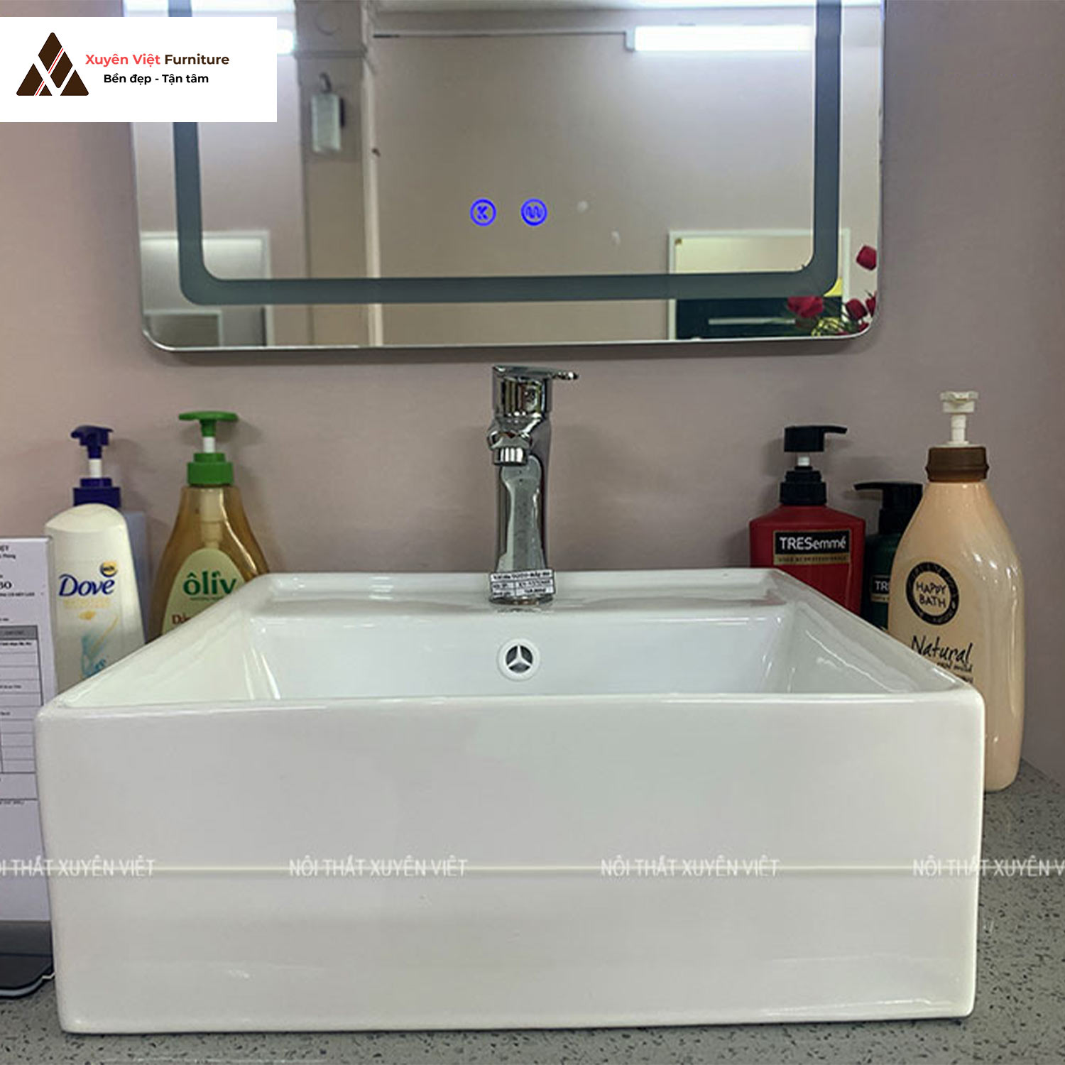 Chậu rửa lavabo đặt bàn hình vuông sang chảnh XVCV11 hiện đang được bày bán sẵn tại showroom Xuyên Việt. Chiếc chậu rửa lavabo có dáng hình vuông đầy sang trọng hiện đại giúp không gian phòng tắm gia đình bạn luôn luôn được toả sáng. Chiếc chậu XVCV11 với chất lượng sản phẩm bằng men sứ, chống trầy xước dễ dàng vệ sinh. Sản phẩm đồng bộ đa dạng, thiết kế sang trọng đẳng cấp giá cả hợp lý. [caption id="attachment_8466" align="aligncenter" width="1500"]