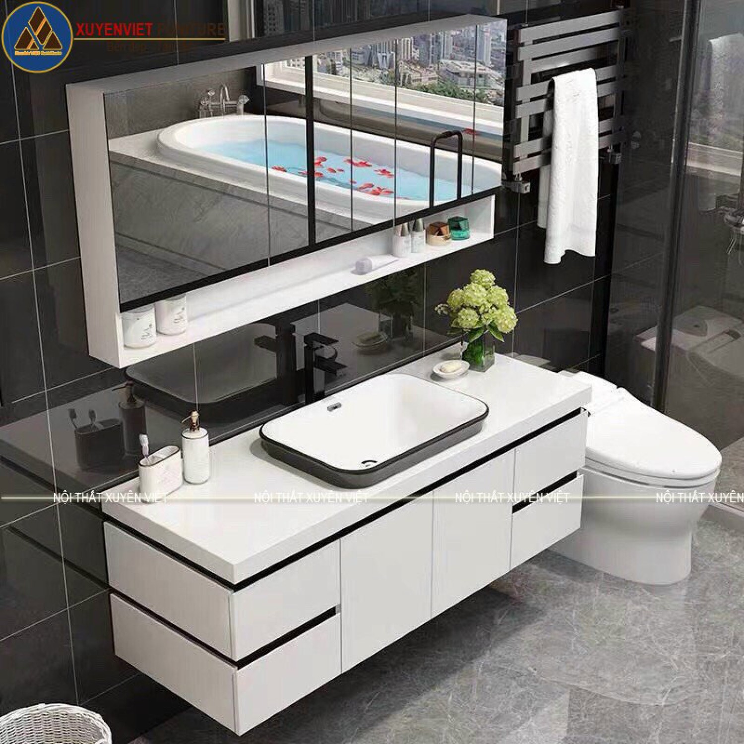 Xuyên Việt lên thiết kế cho bộ tủ lavabo đẹp tông trắng chủ đạo đơn giản và hiện đại[/caption]