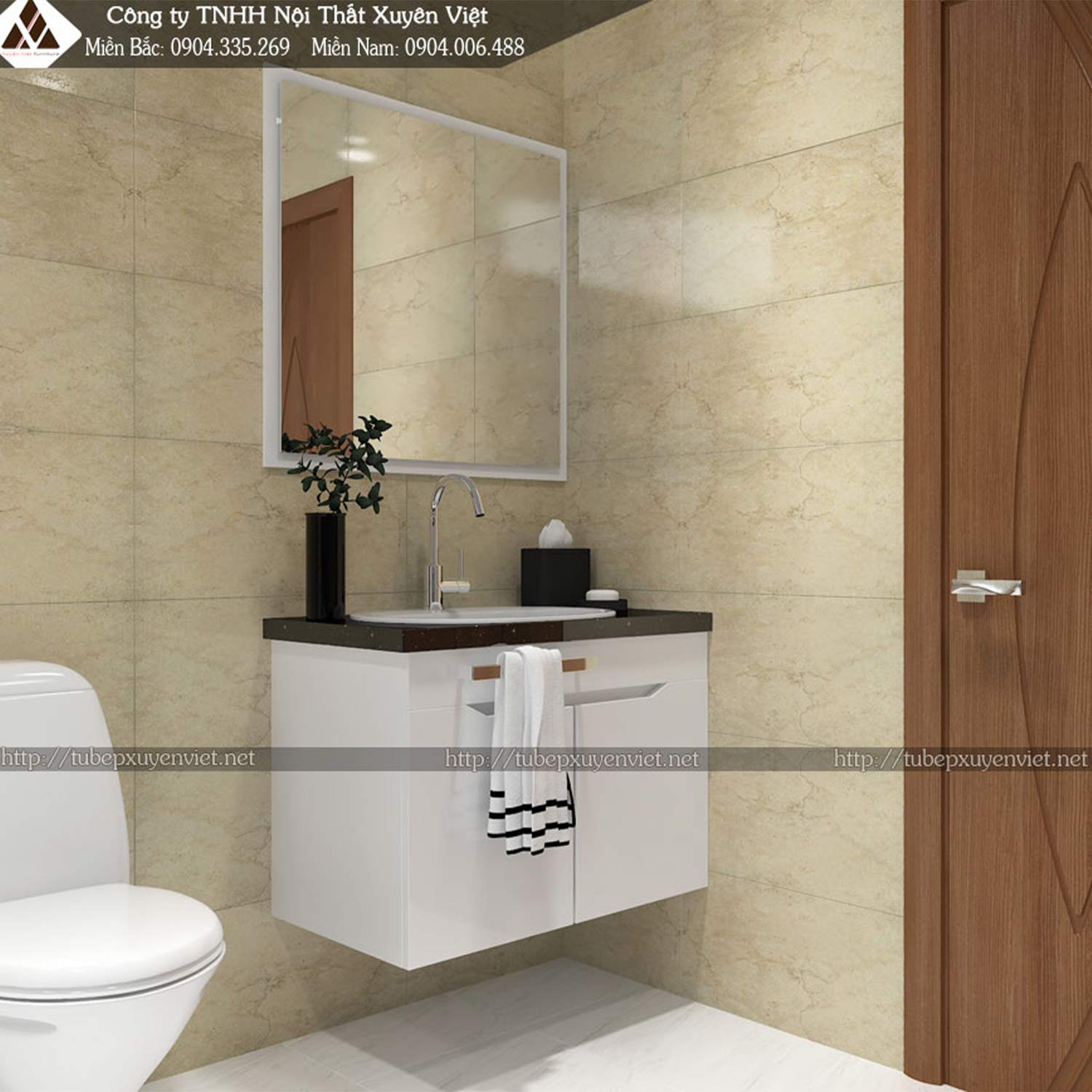Hình ảnh bộ tủ lavabo tone trắng thanh lịch XVL654