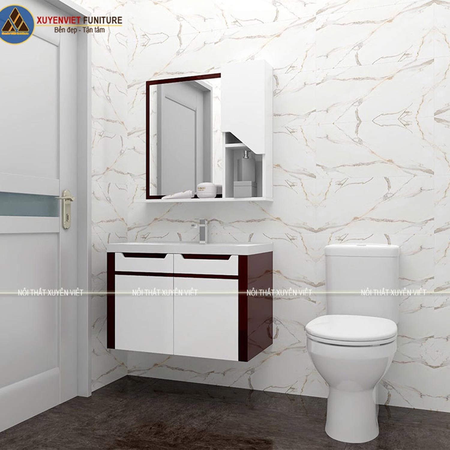 Tủ lavabo treo tường với đường cải lai đẹp mắt và bố trí công năng sử dụng tuyệt vời tại Xuyên Việt[/caption]
