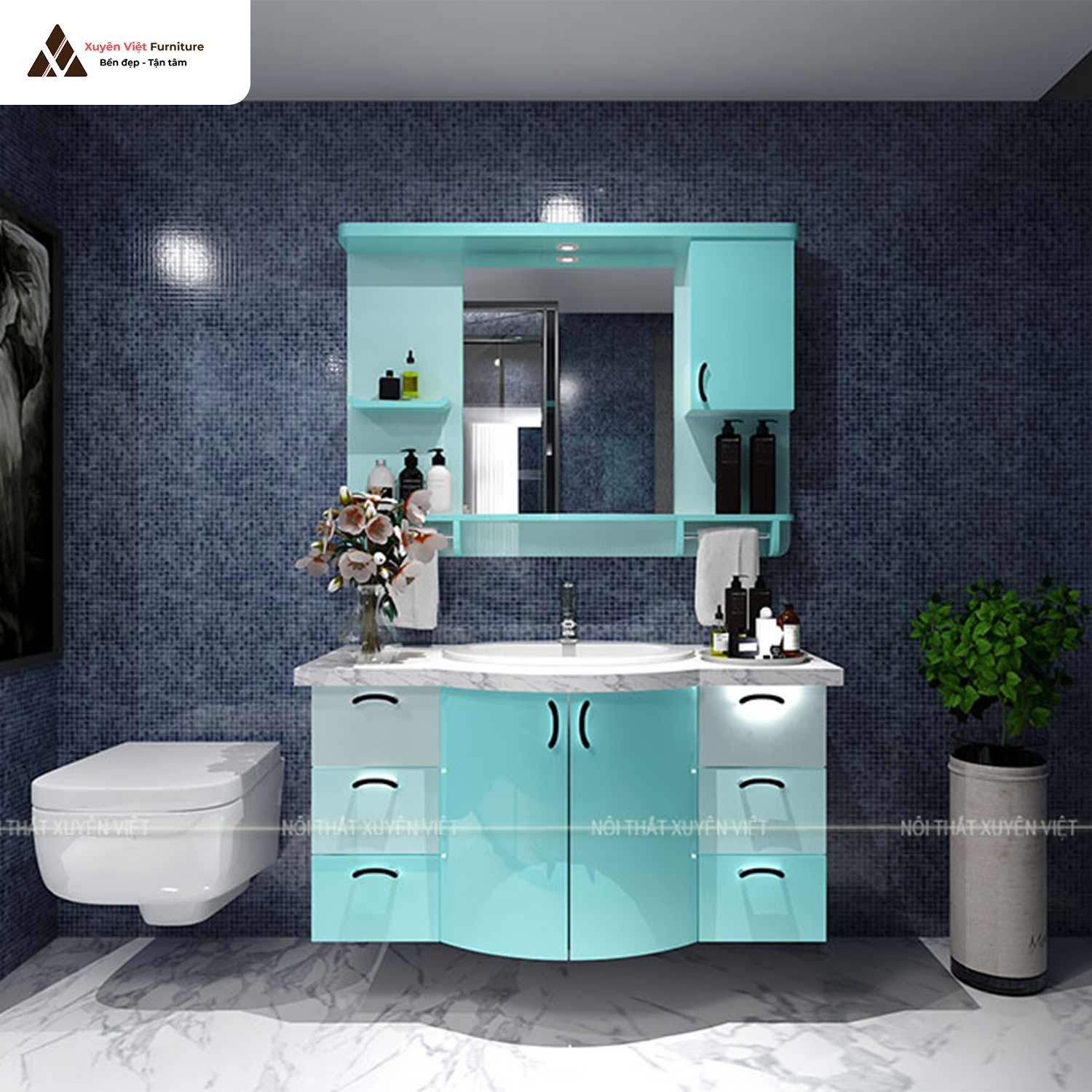 - Nếu bạn yêu thích màu xanh bạc hà mát lạnh thì không thể bỏ qua bộ tủ lavabo cánh cong XVL708 này được.