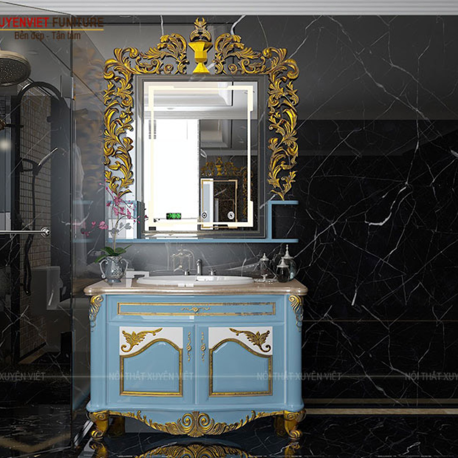 Tủ lavabo dát vàng đầy đẳng cấp bậc thượng lưu XVL838 được Xuyên Việt thiết kế riêng cho từng phòng tắm. Nét sang trọng quý tộc mà không thiết kế nào có thể sánh ngang được đó chính là phong cách tân cổ điển.