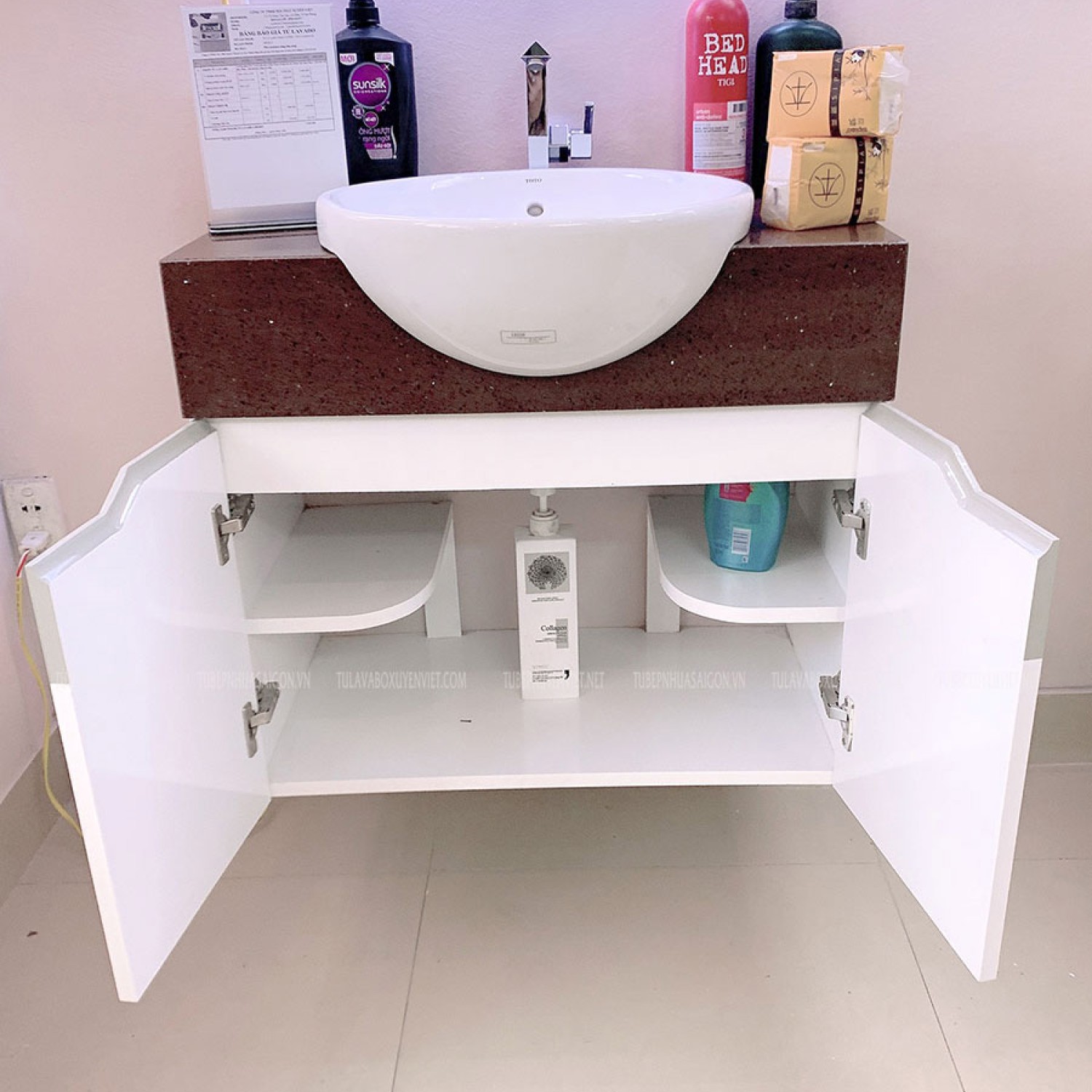 Với hơn 20 năm kinh nghiệm trong nghề sản xuất tủ lavabo đẹp chất lượng, Xuyên Việt hoàn toàn tự tin đem đến cho quý khách hàng những mẫu tủ lavabo đẹp đẳng cấp, hiện đại với chất liệu tốt nhất trên thị trường hiện nay. Dưới đây Xuyên Việt xin gởi tới quý khách hàng cách thức đặt tủ lavabo đẹp tại Xuyên Việt như sau: 1. Liên hệ tới showroom: 113 Tô Hiệu, Trại Cau, Lê Chân, TP.Hải Phòng qua Hotline 0989.403.871 hoặc qua trực tiếp showroom (Nếu quý khách tại Hải Phòng) để được chuyên viên tư vấn về kích thước, báo giá chi tiết về bộ sản phẩm này.