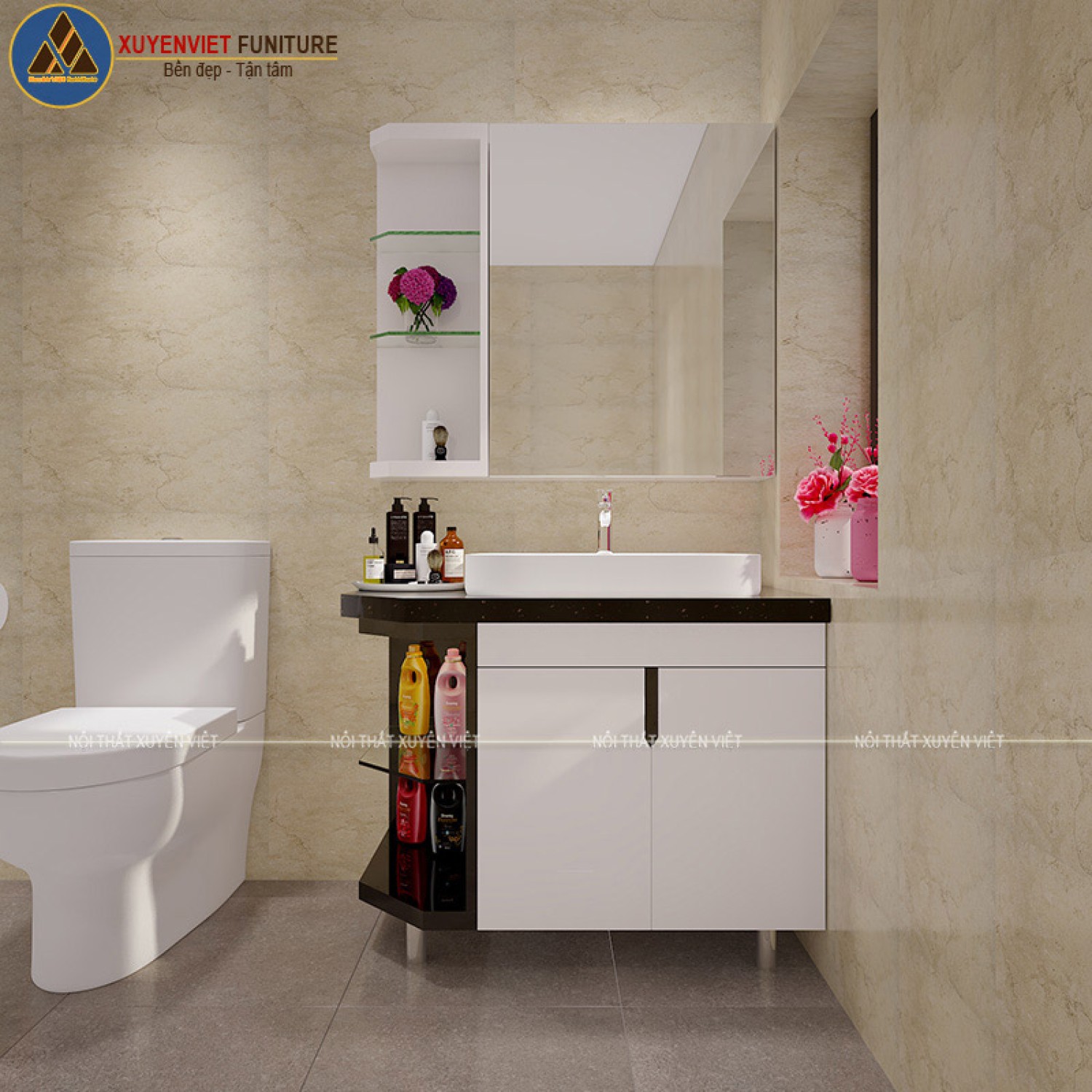 Nếu quý khách yêu thích bộ tủ lavabo hiện đại tông đen trắng đầy sang chảnh này vui lòng liên hệ ngay với Xuyên Việt qua HOTLINE: 0904.006.488( Mr.Hảo) để sở hữu ngay bộ tủ đầy đa năng này.