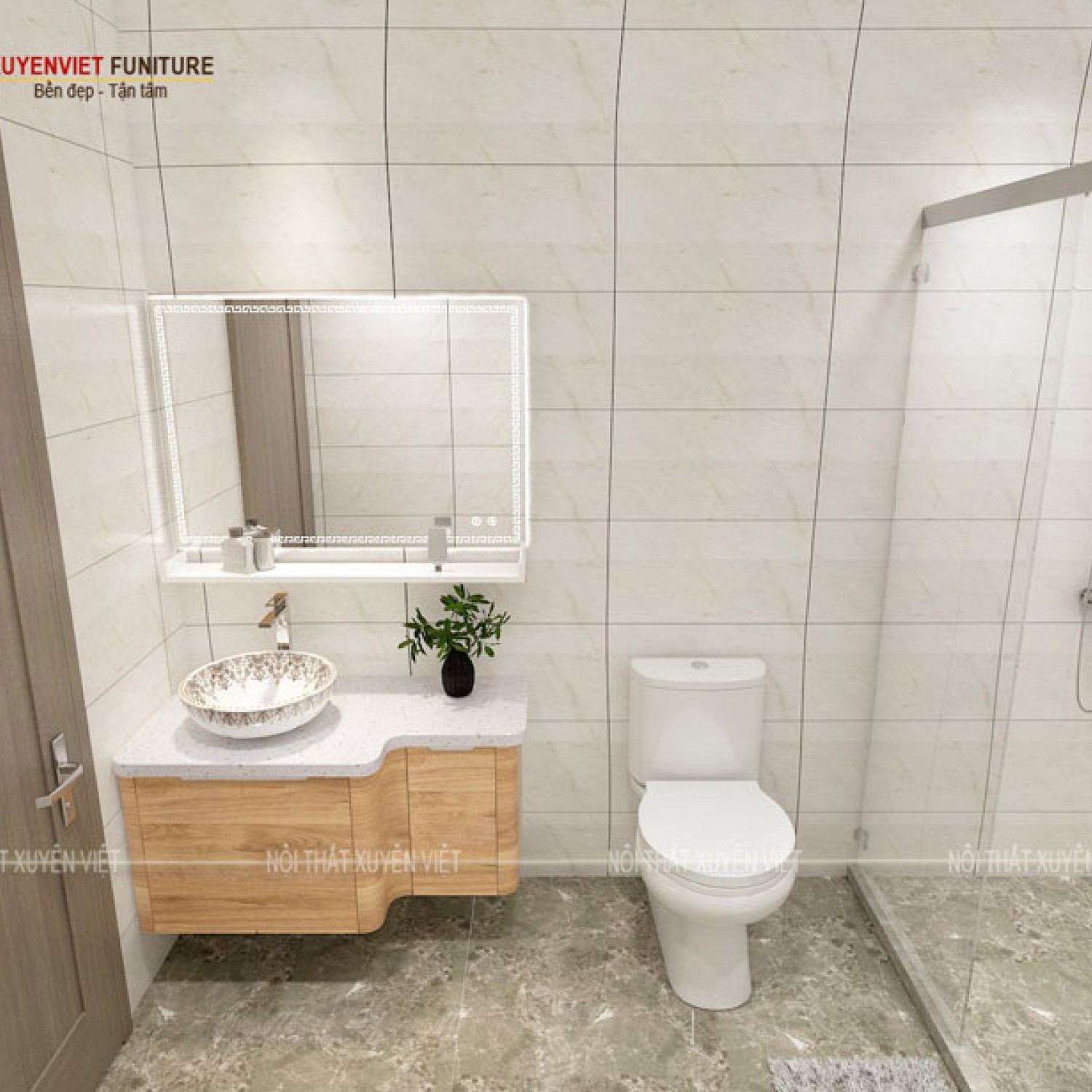 Đơn giá đã bao gồm: Tủ lavabo, Khung gương, Mặt đá .... (Chưa bao gồm chậu, vòi, xiphong...)