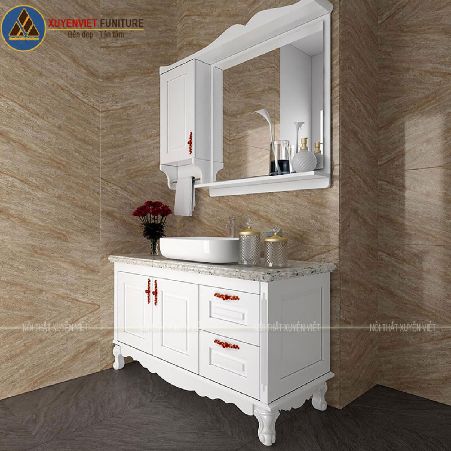 Tủ lavabo nhựa cổ điển tông trắng XVL801 trong nội thất