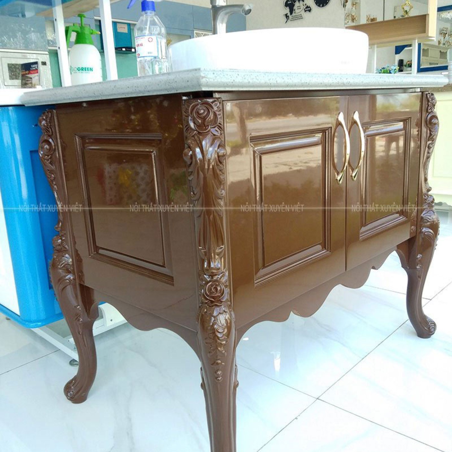 Tủ lavabo tân cổ điển LBK1003S đang được bày bán tại showroom 1276 Thủ Đức – HCM. Nếu quý vị đang muốn tìm cho gia đình mình mẫu tủ chậu rửa mặt hiện đại, chất lượng nhưng không kém phần sang trọng thì đây là mẫu tủ đáng để lựa chọn. Hãy cùng Xuyên Việt tìm hiểu xem mẫu tủ này có gì đặc biệt quý vị nhé! [caption id="attachment_9869" align="aligncenter" width="800"]Tủ lavabo tân cổ điển có sẵn tại Xuyên Việt Tủ lavabo tân cổ điển có sẵn tại Xuyên Việt[/caption] Chiêm ngưỡng mẫu tủ lavabo tân cổ điển LBK1003S Mẫu tủ lavabo tân cổ điển LBK1003S được Xuyên Việt thiết kế màu nâu cà phê mang vẻ đẹp sang trọng và quý phái. Với kiểu dáng chân đứng cùng với đường nét tinh tế. Chất liệu làm nên bộ tủ lavabo tân cổ điển LBK1003S có sẵn tại Xuyên Việt Được làm từ tấm nhựa PVC đặc có đặc tính ưu việt: chịu nước, chịu nhiệt, chống mối mọt, cong vênh, nứt xé…. Bề mặt phủ sơn men bóng ô tô có ánh kim dễ lau chùi, không bám bẩn…. Không bị cong vênh và co rút khi thời tiết thay đổi Nhẹ, bền và đẹp trong quá trình sử dụng Không chứa chất độc hại, an toàn cho sức khỏe và thân thiện với môi trường Chứa đồ dùng cá nhân một cách gọn gàng & kín đáo Độ bền tối thiểu 20 năm sử dụng - Với những ưu điểm này, mẫu tủ chậu lavabo với kiểu dáng chân đứng LBK1003S hoàn toàn chiếm được cảm tình của quý khách hàng - những người tiêu dùng thông thái. Thông số cho bộ tủ chậu lavabo LBK1003S tại Showroom Xuyên Việt + Bộ sản phẩm gồm: Tủ lavabo, Mặt bàn đá + Chất liệu tủ: Tấm Nhựa PVC dày 18mm + Cánh tủ: Nhựa PVC 18mm soi pano chỉ chìm – Sơn men bóng màu nâu + Kiểu dáng: Chân đứng + Mặt đá: Đá thạch anh nhân tạo màu ghi + Kích thước tủ: D970 x C800 x S610(mm) + Kích thước mặt đá: D970 x S610(mm) +Chậu lavabo: Chậu rửa ToTo Mã sản phẩm: LT700CTR +Vòi rửa: Vòi rửa 2 đường nước nóng lạnh - Mã sản phẩm: 2580R2-18LS hãng gjs. +Phụ kiện đi kèm: Gồm 4 chiếc bản lề giảm chấn, 2 chiếc tay nắm dương. Video thực tế của bộ tủ lavabo tân cổ điển tại Xuyên Việt Liên hệ để đặt đóng bộ tủ lavabo tân cổ điển Công ty Nội Thất Xuyên Việt sử dụng tấm nhựa ARIMAT với thành phần chính là nhựa PVC được sản xuất tại Việt Nam thân hiện với môi trường. Với thành phần chính là nhựa PVC cộng với phần bên trong lõi nhựa rất đặc nên có khả năng: - Chống nước 100% , không sợ ẩm mốc mối mọt - Lõi đặc cầm rất trầm tay, giúp tủ không bị cong vênh, bắt bản lề, bắt vít tốt. Với hơn 20 năm kinh nghiệm trong nghề sản xuất tủ chậu lavabo chất lượng, Xuyên Việt hoàn toàn tự tin đem đến cho quý khách hàng những mẫu tủ chậu lavabo hiện đại đẳng cấp nhất. Xuyên Việt xin gởi tới quý khách cách thức đặt tủ chậu lavabo cao cấp như sau: 1. Liên hệ tới showroom gần nơi quý khách nhất (địa chỉ được hiển thị phía dưới màn hình) để xem những mẫu tủ chậu lavabo có sẵn tại cửa hàng. 2. Liên hệ qua một trong hai số Hotline của Xuyên Việt: 0904.335.269 (miền bắc) - 0904.006.488 (miền nam) để được tư vấn nhanh nhất về thiết kế tủ lavabo bằng nhựa cũng như báo giá và nguyên liệu cũng như sản phẩm phù hợp với không gian phòng tắm của gia đình mình. 3. Quý khách muốn đặt đóng theo mẫu tủ lavabo có kích thước phù hợp với diện tích phòng tắm gia đình mình => Hãy kết bạn Zalo theo từng Hotline showroom gần nơi mình ở để được chuyên viên tư vấn Xuyên Việt báo giá chi tiết, sau khi báo giá chi tiết Xuyên Việt sẽ có kỹ thuật qua nhà tư vấn và đo đạc để lên thiết kế và sản xuất . Xin chân thành cảm ơn Quý khách hàng đã tin tưởng và lựa chọn sản phẩm của công ty chúng tôi!