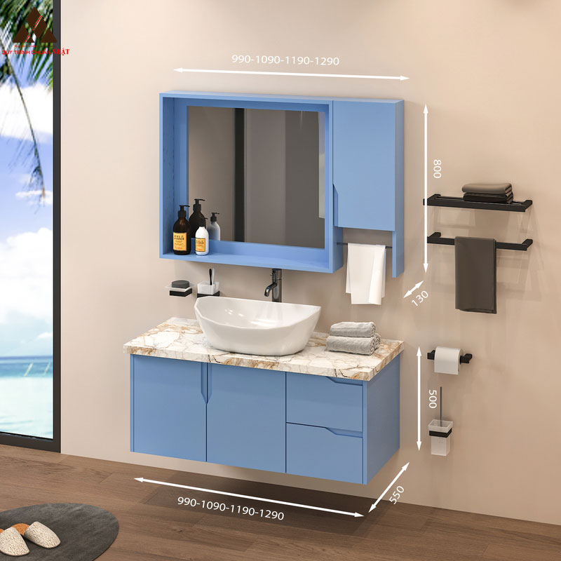 Tủ Lavabo treo tường tone xanh dương hiện đại  T01129 - 4