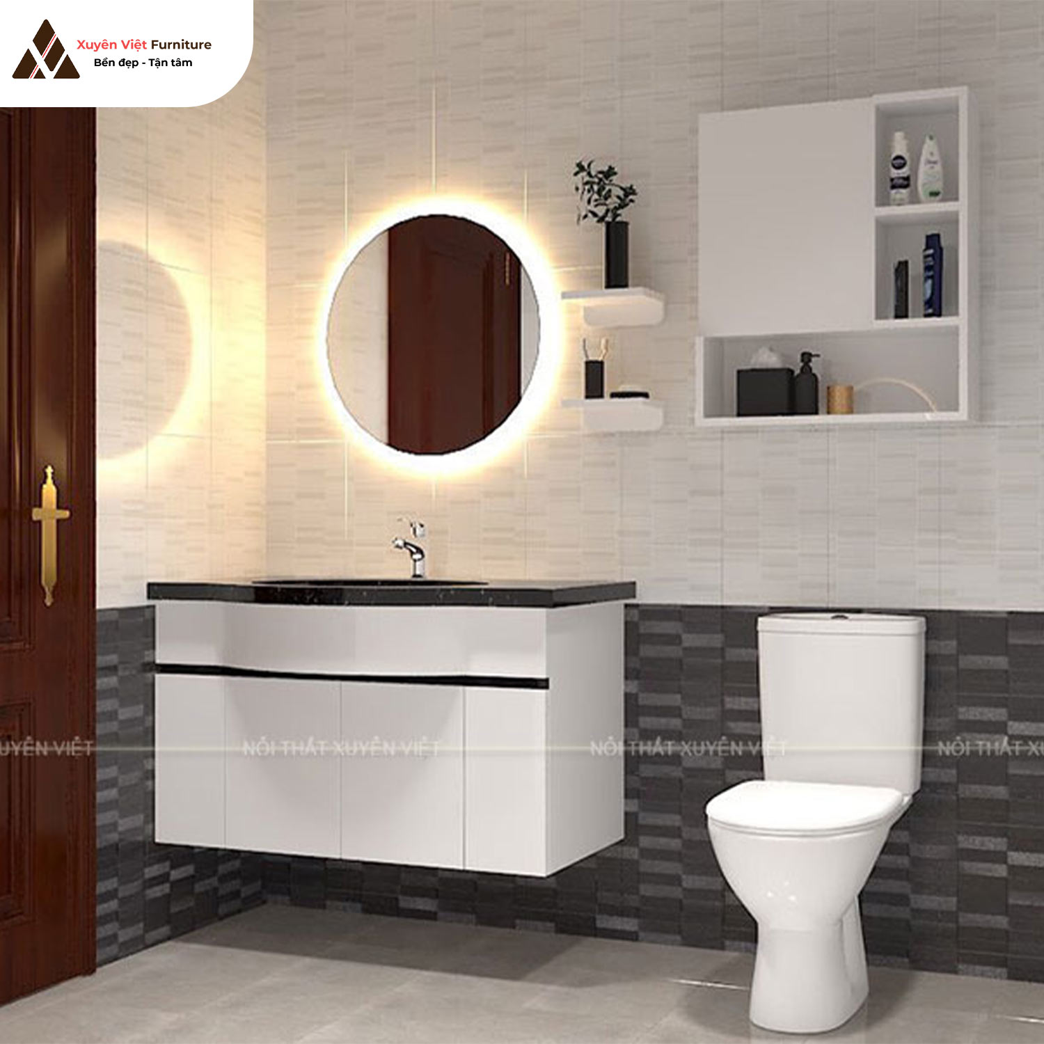 Tủ Lavabo: Tủ lavabo âm tường với kiểu dáng sát tường tạo cho không gian trở nên rộng rãi và bắt mắt tạo tạo sự tươi mới cho phòng tắm