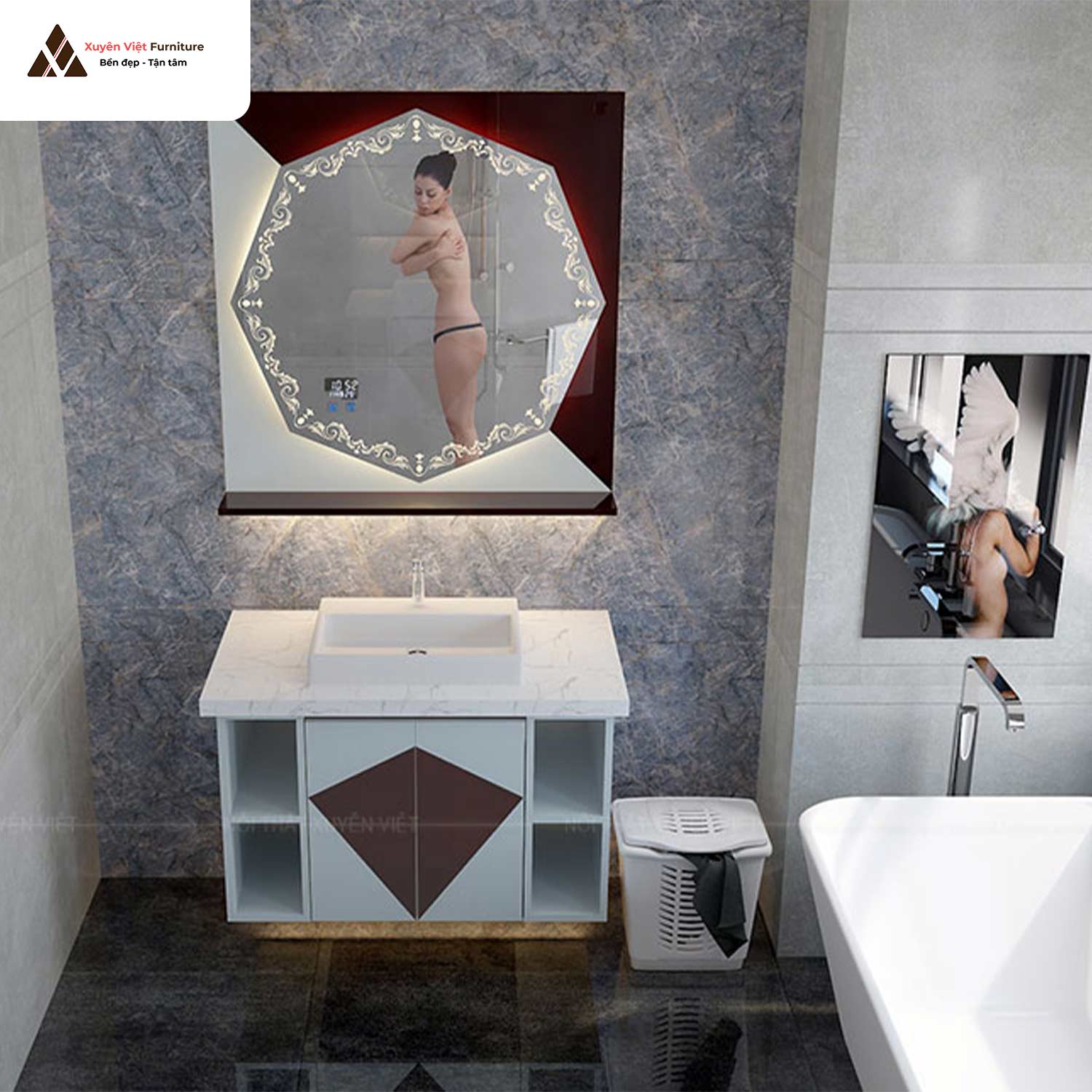 Đơn giá đã bao gồm: Tủ lavabo, Khung gương Led, Mặt đá ....(Chưa bao gồm chậu, vòi, xiphong...)