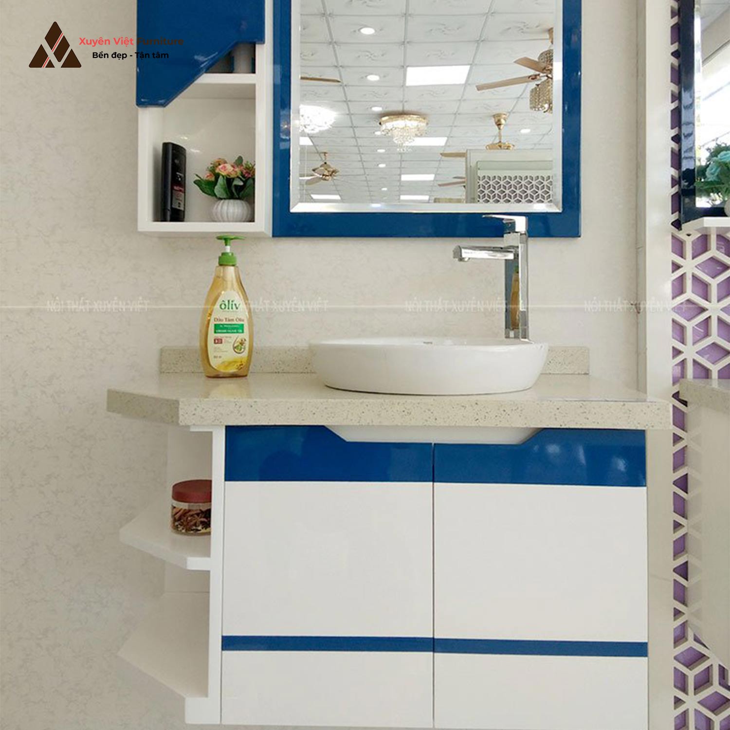 Mẫu tủ chậu lavabo LBK1001S được Xuyên Việt thiết kế màu xanh trắng mang đến vẻ đẹp rất sành điệu, hiện đại và thời trang.