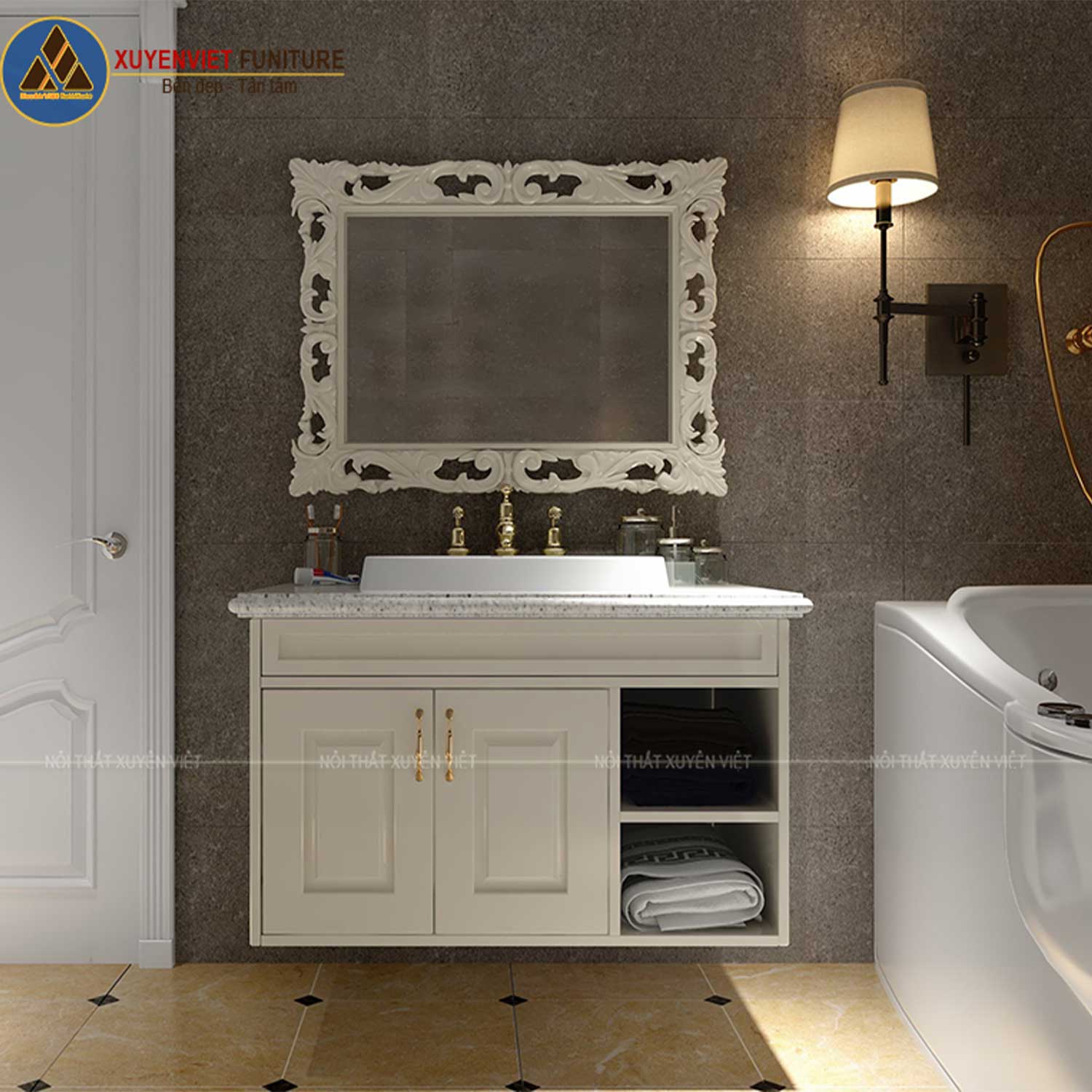 Hệ gương: Gương hồng koong có hoa văn cổ điển đẹp và sang chảnh,tạo nên nét cổ điển truyền thống. Gương có chiều dài 900 mm, chiều cao 700mm giúp khách hàng thoải mái sử dụng.